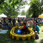 Im Park selber wurde das Gewusel dichter. Immer mehr Familien mit Kindern besuchten den Park. An fast allen Ständen waren nun Warteschlangen. Das tat der guten und entspannten Stimmung keinen Abbruch. Auch das Team vom Bürgerverein lief wieder zu Hochform auf. 4-5 Kinderschminker, 3-4 Bastler, 3-4 Leute als Kletterhilfe, die Tontechnik, die sanitätsdienstliche Absicherung, die Kuchenverkäufer – alle hatten die Hände voll zu tun. Zeitweise schwirrten bis zu 20 grüne T-Shirts des Bürgervereins im Park herum. Schön, dass wir auch fünf neue Enthusiasten zur Mitarbeit gewinnen konnten. Damit wuchs die Zahl unserer Mitstreiter auf 61 Bürger, die sich aktiv für ihren Stadtteil einbringen wollen.